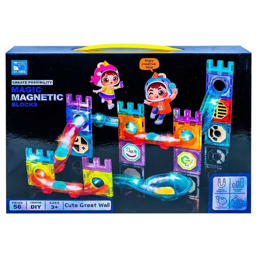 Set de constructie magnetic, Pista de masini, 56 piese 5 - 7 ani,3 - 5 ani,8 ani