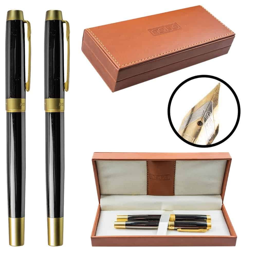 - Setul foarte potrivit pentru cadou contine un pix si un stilou depozitate intr-un etui elegant.