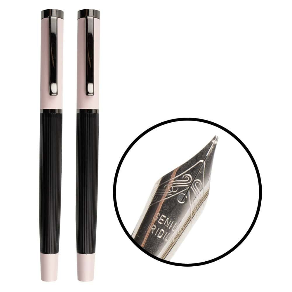 - Detalii stilou: penita iridium, la vedere; convertor; capac cu clema metalica; grip gri, cu aspect lucios si 3 tesituri antialunecare; corp din metal vopsit negru si roz; dimensiuni convertor: 7×0.6×0.6 cm, dimensiuni stilou: 13.8×1.5×1.1 cm.