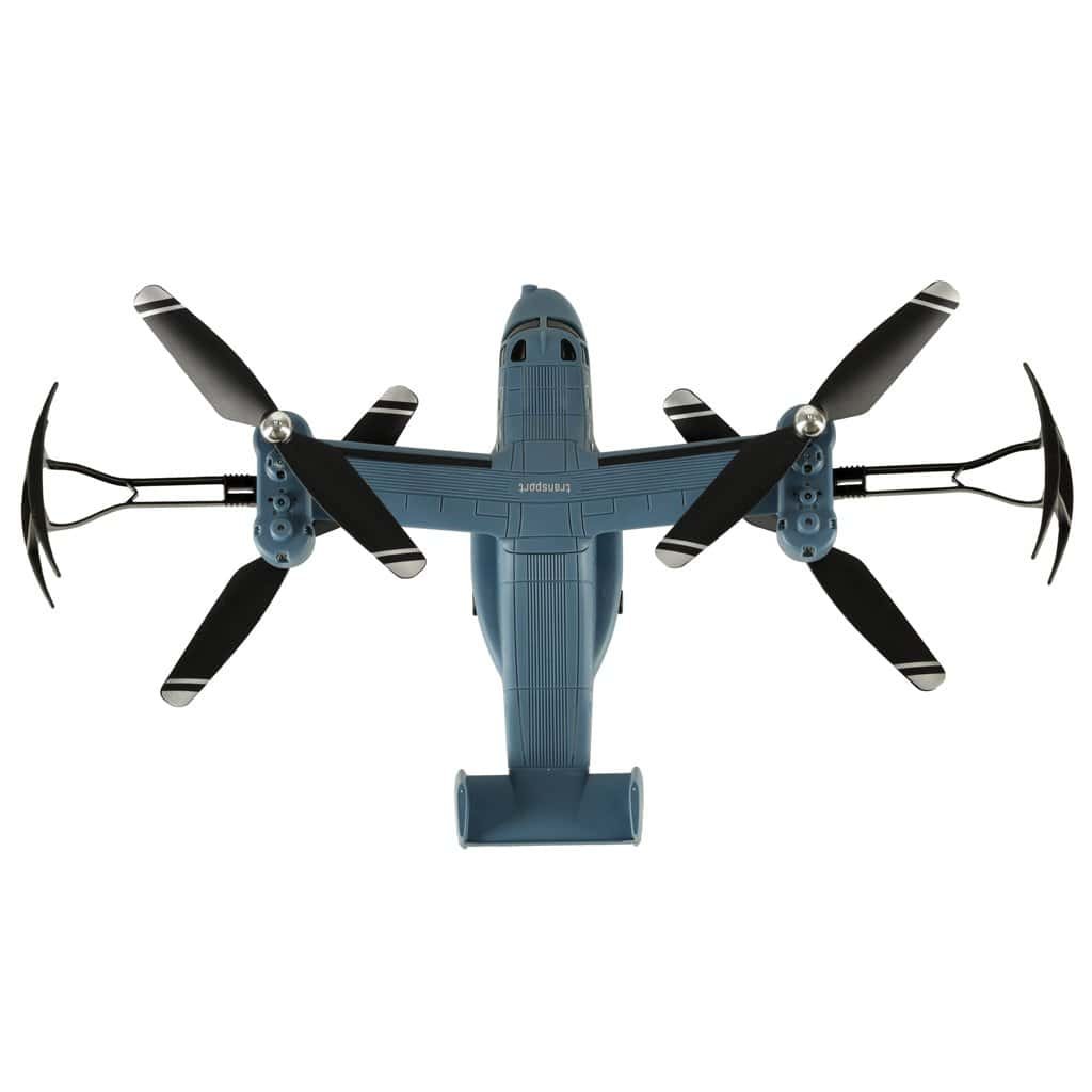 este un produs fantastic pentru fanii modelelor cu telecomandă. Aspectul său seamănă cu un avion, ceea ce îl face să se deosebească de alte modele. Drona este alimentată de o baterie reîncărcabilă cu un timp de încărcare de aproximativ 60 de minute. Sunt incluse elice de rezervă, protecții pentru elice și un controler cu baterie. Joaca cu drona este excelentă pentru dezvoltarea abilităților manuale și a coordonării ochi-mână.