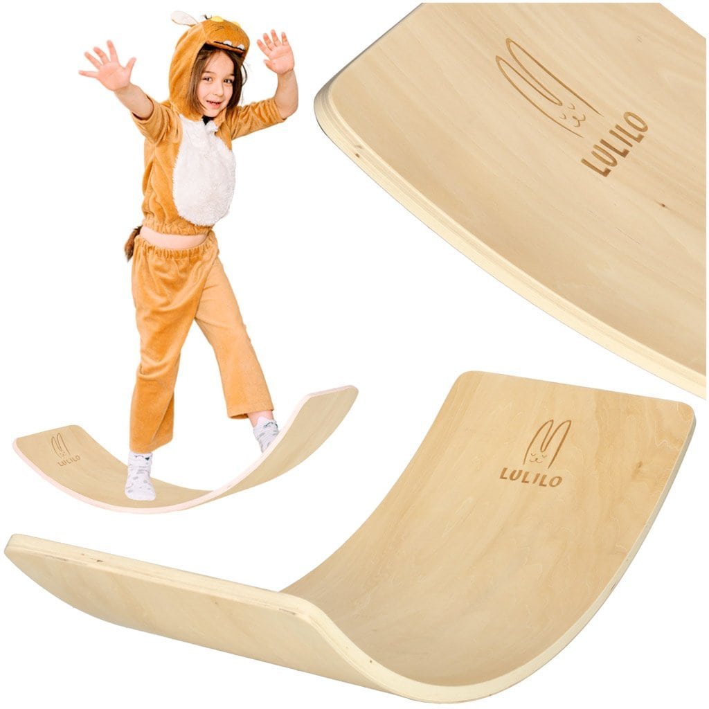 Placa de echilibru din lemn pentru a îmbunătăți simțul echilibrului. Ideal pentru copii și adulți. Poate fi o jucărie, un balansoar, un scaun sau poate fi folosit ca instrument de exerciții. Material: placaj de tei. Sarcina maximă: până la 200 kg. Dimensiuni: 82x30x2cm.