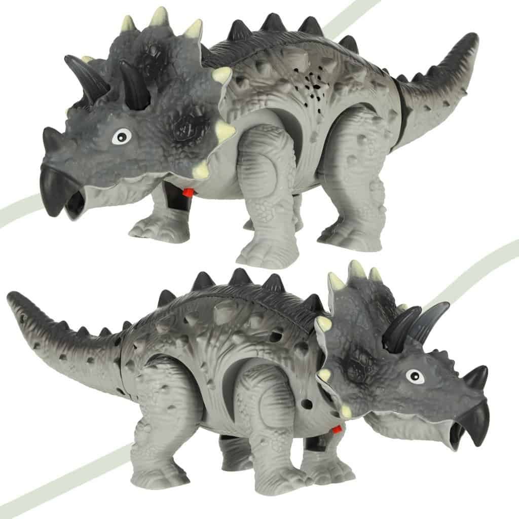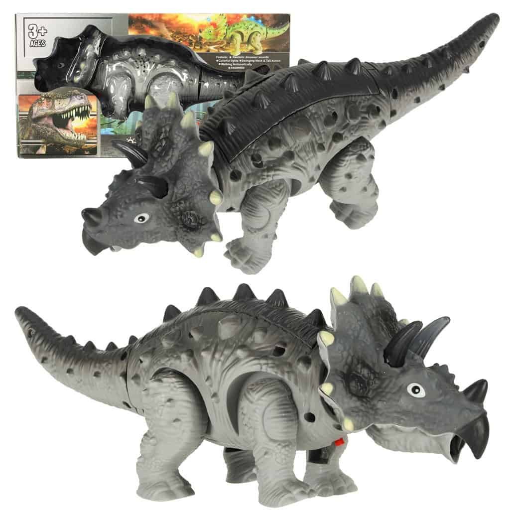 Dinozaurul Triceratops - o jucărie interactivă care îi va duce pe copii într-o călătorie extraordinară în trecut. Dinozaurul merge, se luminează și, de asemenea, răcnește - este aproape ca unul real, aproape! Alimentare: 3x baterie AAA. Material: plastic. Dimensiuni: 28 cm x 10 cm x 11 cm.