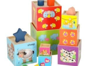 Sunteți în căutarea unei jucării care nu numai că distrează, dar și învață și dezvoltă copilul dumneavoastră? Piramida de blocuri din lemn cu motivul animalelor de fermă este combinația perfectă de divertisment și educație. Este o propunere originală pentru copiii mici de la vârsta de 2 ani, care susține dezvoltarea intelectuală, motorie și a limbajului prin joc multisenzorial.