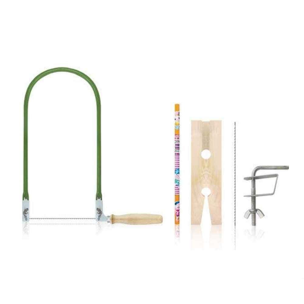 - Setul contine: cadru pentru traforaj, creion, suport pentru taiere, burghiu, clema de prindere.